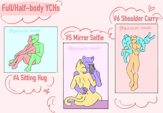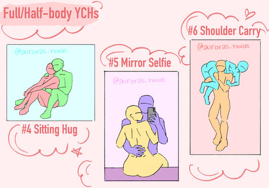 My YCHs are seasonal/ holiday themed and change roughly every 1-2 months